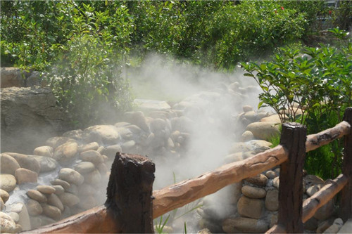 造景:雾可以更加轻盈婉约,空灵飘渺,也可以幽暗浩瀚,也可以进行单独成景,自成天地,也可以与水系、假山、绿化等多种文化元素分析相结合以及植物、灯等,造型各异,相得益彰。其多变的形式和功能研究将为我们中国传统园林的山水意境增添水墨艺术元素。其独特的保湿系统功能方面可以得到更好地维护和生长影响植物;