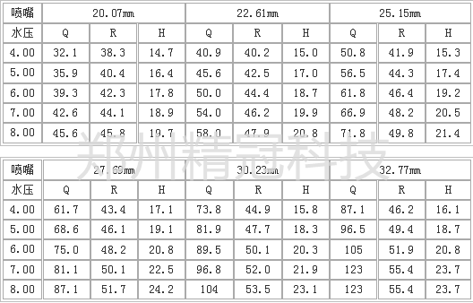 (R:半径 单位:米 | Q:流量 单位:m3/h | H:喷洒高度 单位:米)