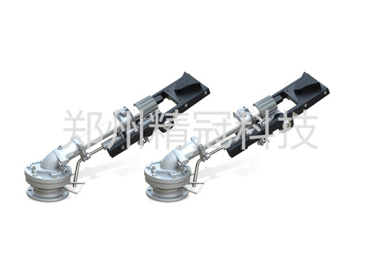 5、垂直摇臂改为双摇臂,从臂前端固定双向导流板喷体的正反旋转,当水流作用在导流板上,产生反作用力使摇臂上下舞动。较大程度上提高了摇臂运行的平衡性和可靠性。